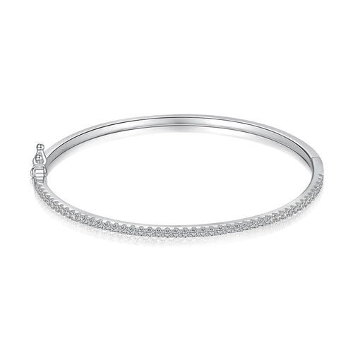 Silver Zircon Round Cut Classic Bangle Tennis Bracelet