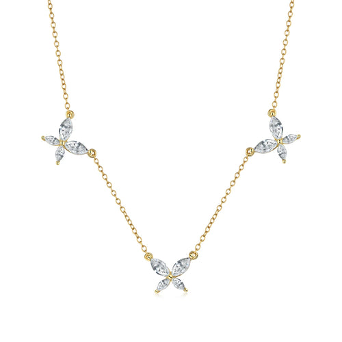 Silver Zircon Marquise Cut Butterfly Chain Necklace